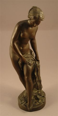 STATUETTE en bronze à patine brune. Fonte d'édition ancienne représentant Vénus au bain. Socle circulaire en bronze.