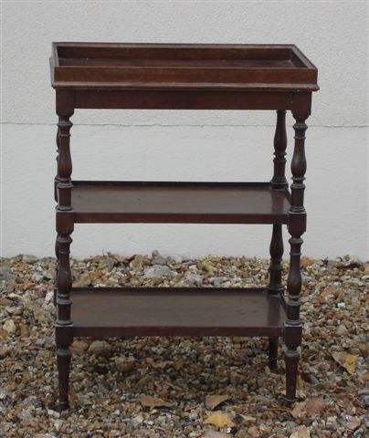 TABLE VIDE-POCHES en bois naturel mouluré. Elle est constituée de trois plateaux superposés. Pieds fuselés.