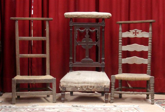 6 prie-Dieu: Haut. 92, Larg. 47, Prof. 44 cm.