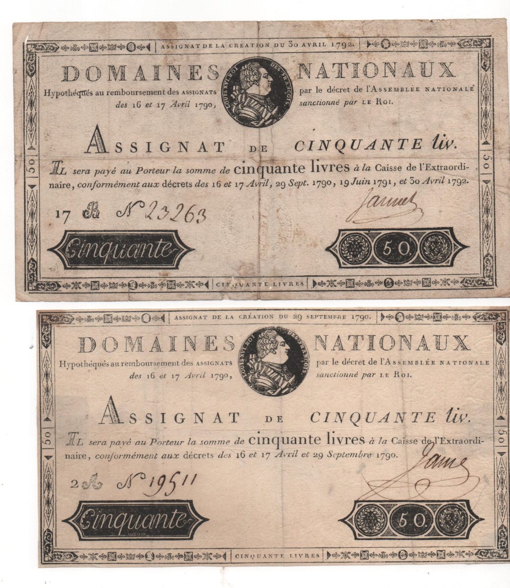 [Révolution française] Assignat de 50 livres à face royale. 6 exemplaires.