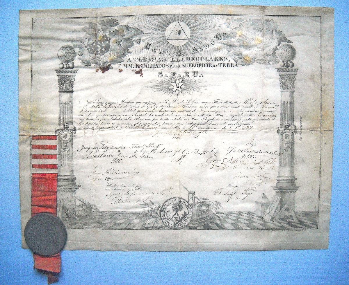 ![Lot 52 - [Brésil] 2 diplômes maçonniques.