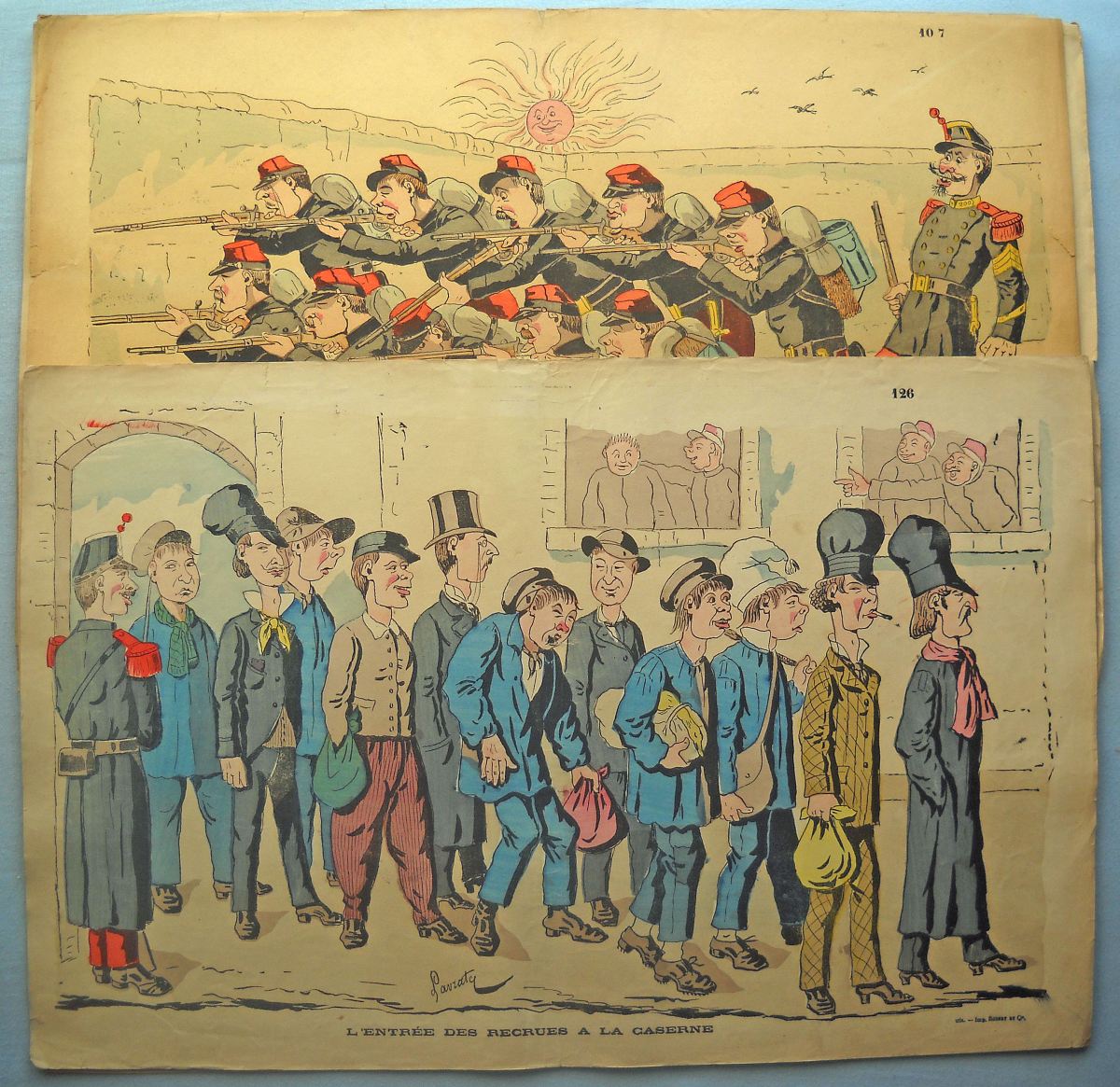 Militaire: L'entrée des recrues à la caserne (2 ex.), A Mossieu Bélandouille a Croquanville en France, Une satanée rencontre, Au peloton de chasse, Une visite à l'infirmerie, Le pansage, Pas de gymnastique, Toilette militaire, Les nouveaux bataillons de l'Armée allemande.