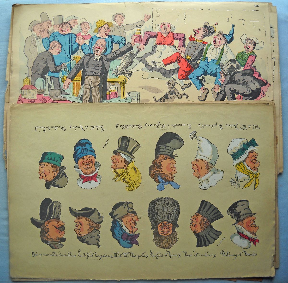 Divers: Au marché aux chevaux (2 ex.), L'Orphéon de Ratichon les Canards, Les jeux innocents, Série de portraits, Le scientifique.