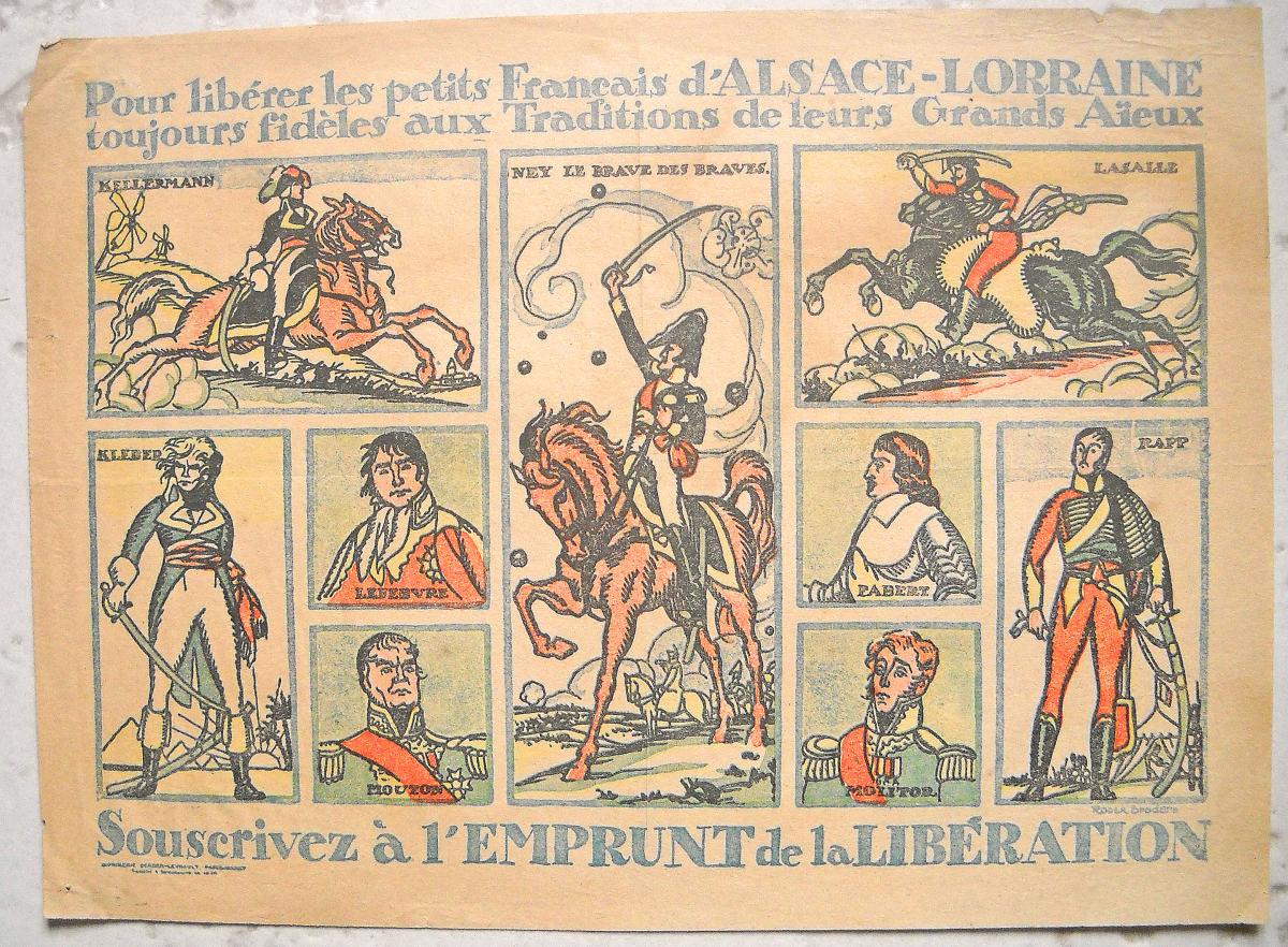 " Souscrivez au 2e emprunt de la défense nationale " [1916], Devambez Paris, 10 exemplaires, 39 x 29 cm, B.E. à T.B.E. - "Pour libérer les petits Français d'Alsace-Lorraine toujours fidèles aux traditions de leurs grands aïeux, souscrivez à l'emprunt de la libération " par Roger Broders, Imp. Berger-Levrault, Paris-Nancy, 28 x 38 cm, B.E. - " Histoire d'une heureuse souscription " [1917] par Baudry de Saunier, publications Omnia Paris, 11 exemplaires, 39 x 28 cm - " Les chansons de Jacquot et de Marie Annette ", Draeger Imp. - " Petits sous, que deviendrez-vous? ", imp. Berger-Levrault - " Un beau talent ", par Marcel Capy.