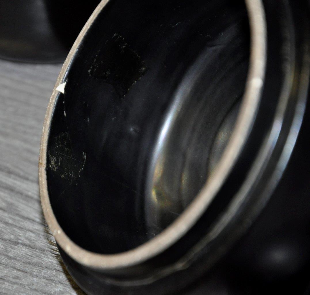 Haut. 16, Diam. 10,5 cm. (éclats et cheveux au couvercle, éclat à la bordure du corps)