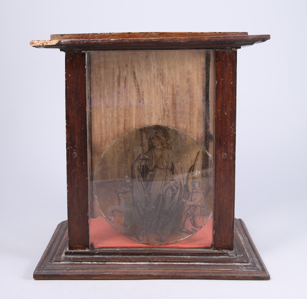 Dans une un niche, contenant un bois sculpté IHS, XVIIe.