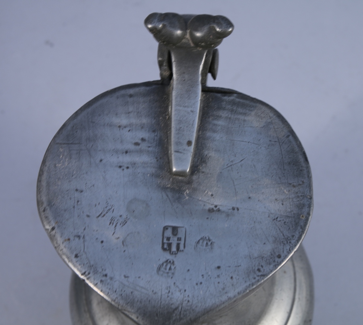 - VERSEUSE balustre à panse basse et col étranglé. Couvercle à charnière poinçonné, orné d'une rosace et monogrammé "CD" sur sa face interne. 24,5 cm. (enfoncements)