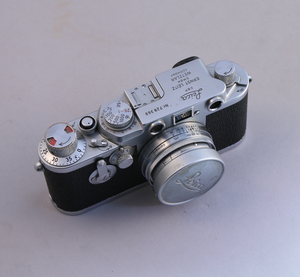 Leica IIIg No 728369 avec objectif Summitar F = 5 cm 1:2 No 980136, avec sacoche.