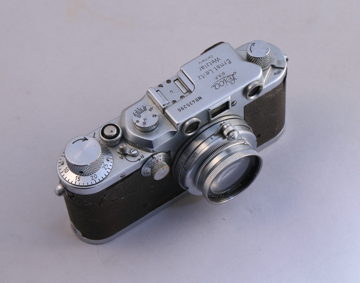 Leica III No 435296 avec objectif Summitar F = 5 cm 1:2 No 467743, avec sacoche.
