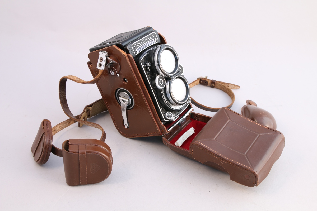 Rolleiflex 2,8 Compur, avec objectif Heidosmat 1:2,8/80 No 868274 et objectif Planar Carl Zeiss 1:2,8 f=80 mm No 3313129, avec sacoche et notice.