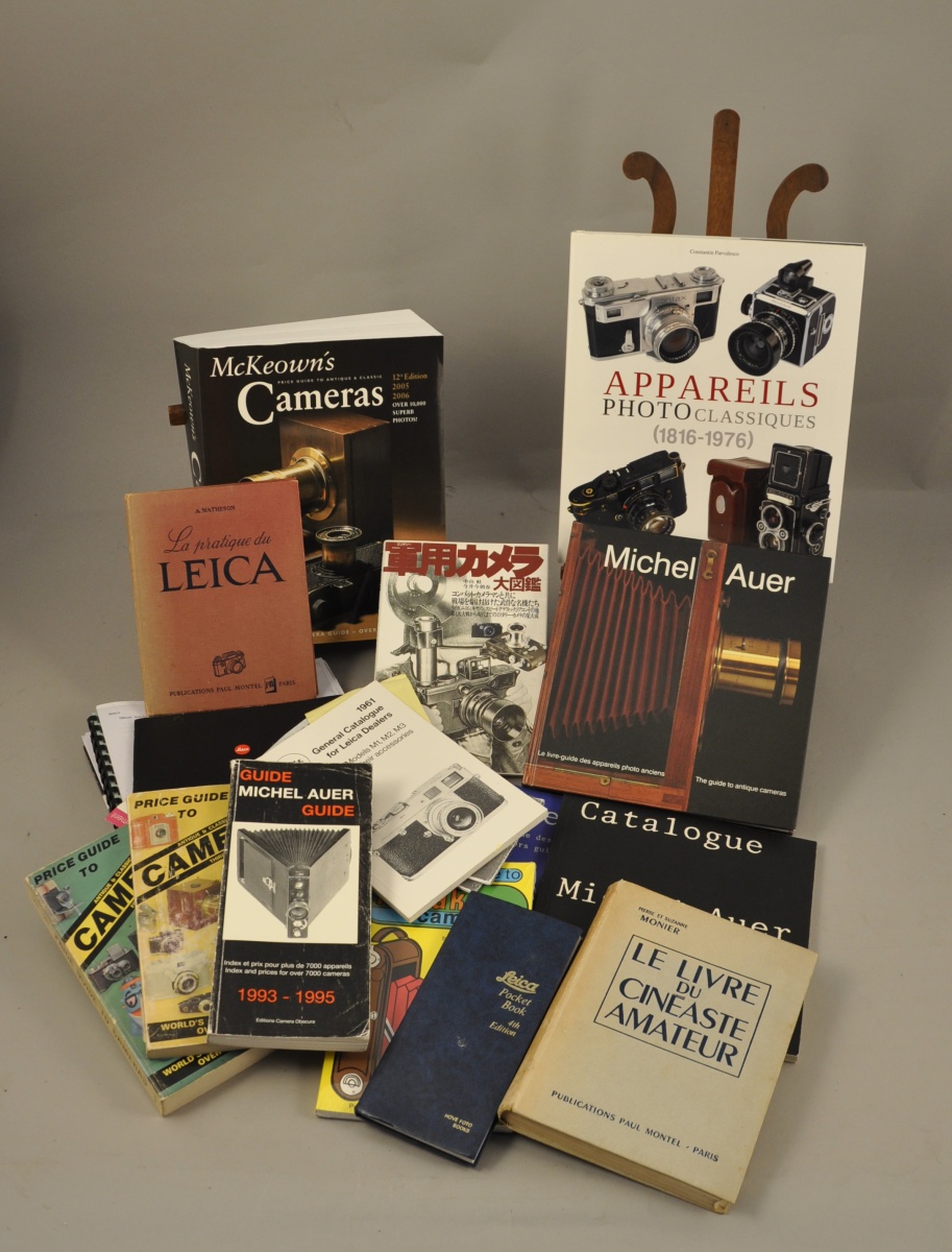 13 ouvrages dont: 5 guides Michel AUER dont le McKeowns guide Camera (2005-2006), Appareils photo classiques (1816-1976), Price guide to Camera, La pratique du Leica, Le livre du cinéaste amateur, Kodak camera.