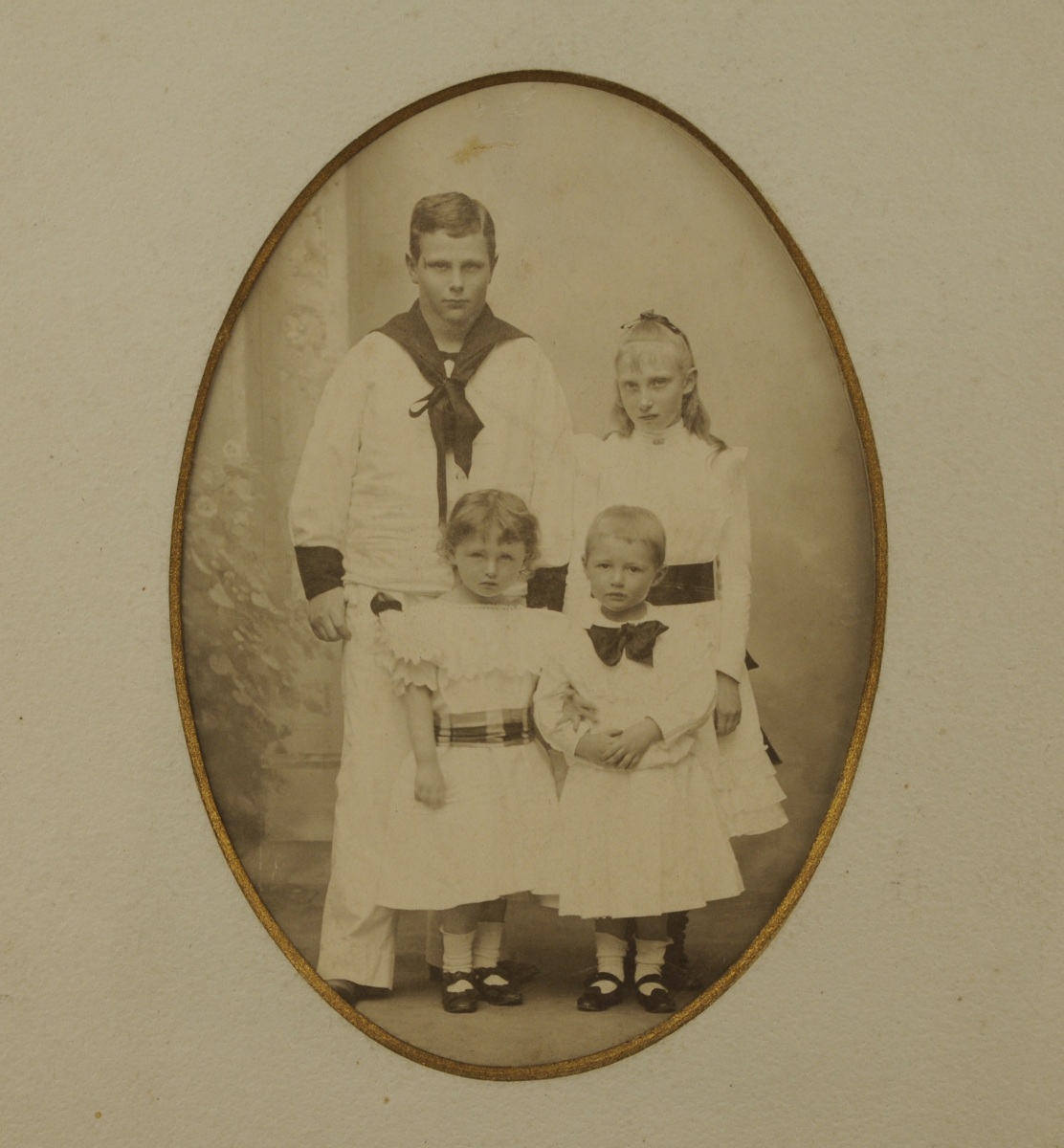 - Le Prince Gustave de Danemark enfant et ses trois soeurs. Vers 1900. Format ovale, 14 x 9,5 cm. (légères usures)