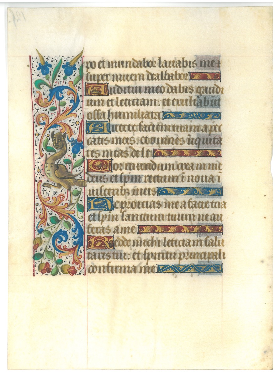 Fragment livre d'heures Rouen 15éme - grotesques en marges.