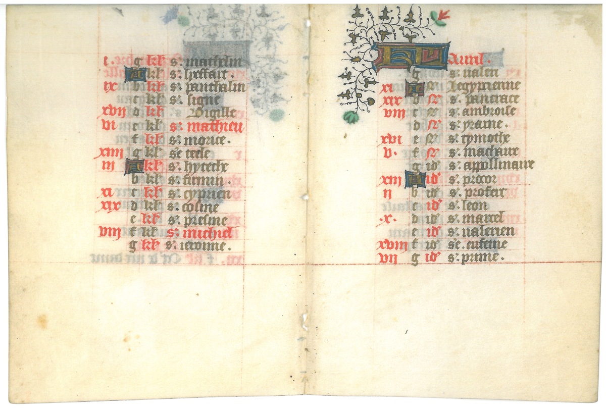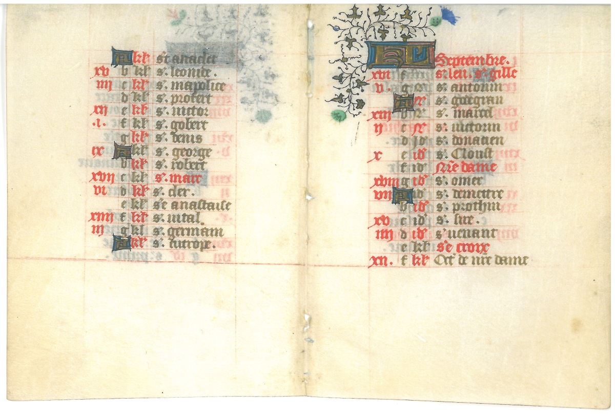 Calendrier Parisien (août septembre), début 15éme.