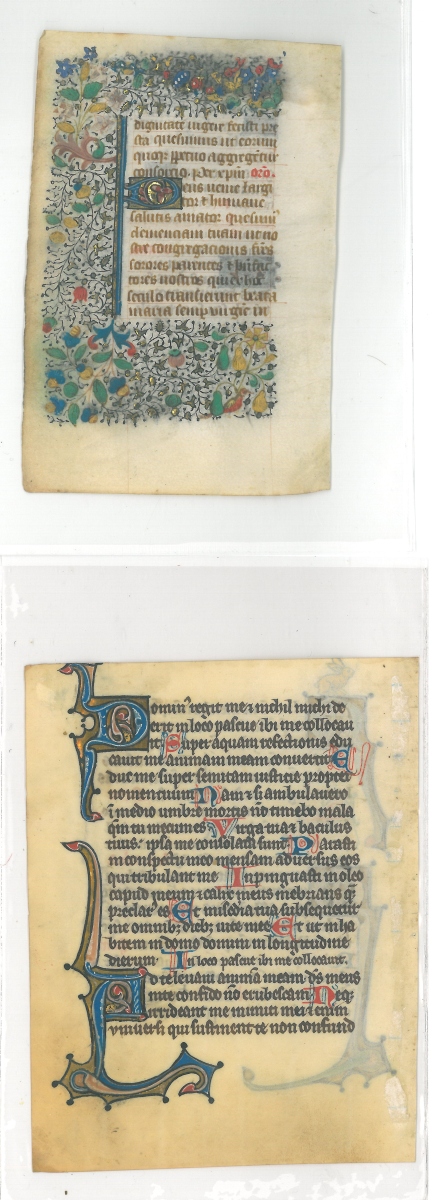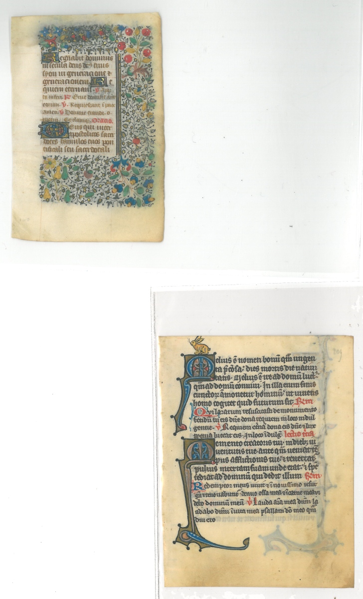 Deux feuillets 15éme et début 14ème extrait de livre d'heures.