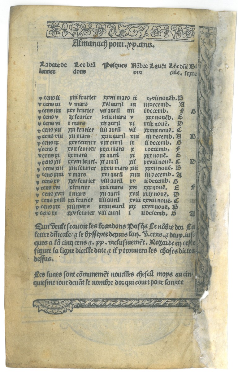Feuillet de livre d'heure imprimé.