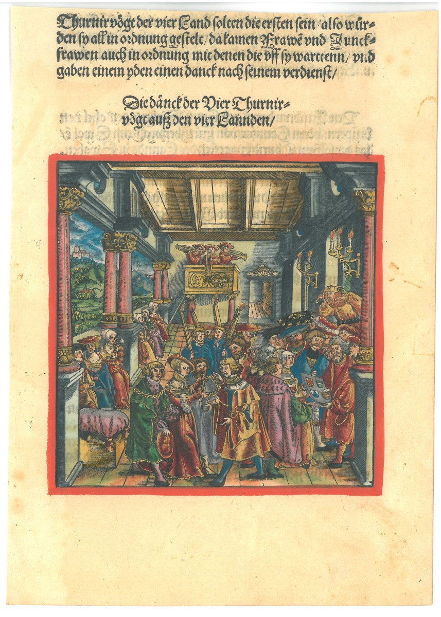 Feuillet imprimé germanique rehaussé 16éme.