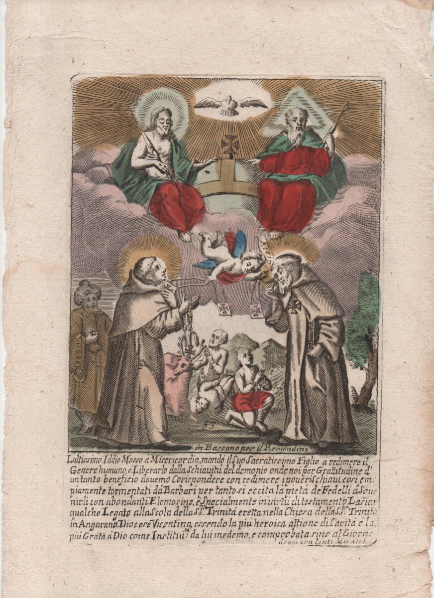 Puis l'entreprise a eu son premier graveur: Isabella Piccini, une religieuse qui a travaillé avec les Remondini pendant un demi-siècle. Lorsqu'il hérita de l'imprimerie, son fils, Giuseppe (Bassano 1672 - Bassano, vers 1750), a favorisé l'exportation vers les états de la Vénétie, et obtenu de la République de Venise le monopole de la fabrication et de la vente de cartes en or, argent, etc. (1739). Il a même créé une autre imprimerie au cur de Venise, où son fils, Giovan Battista (Bassano 1713 - Castello Tesino 1776) a travaillé en collaboration avec les meilleurs graveurs de son temps.