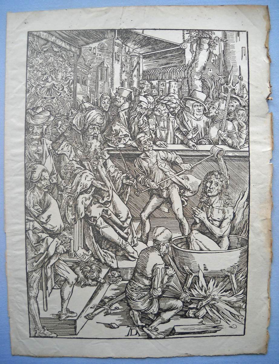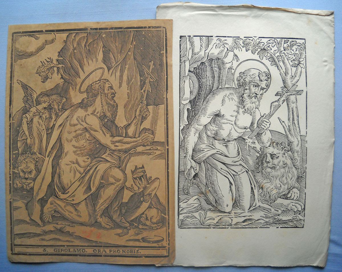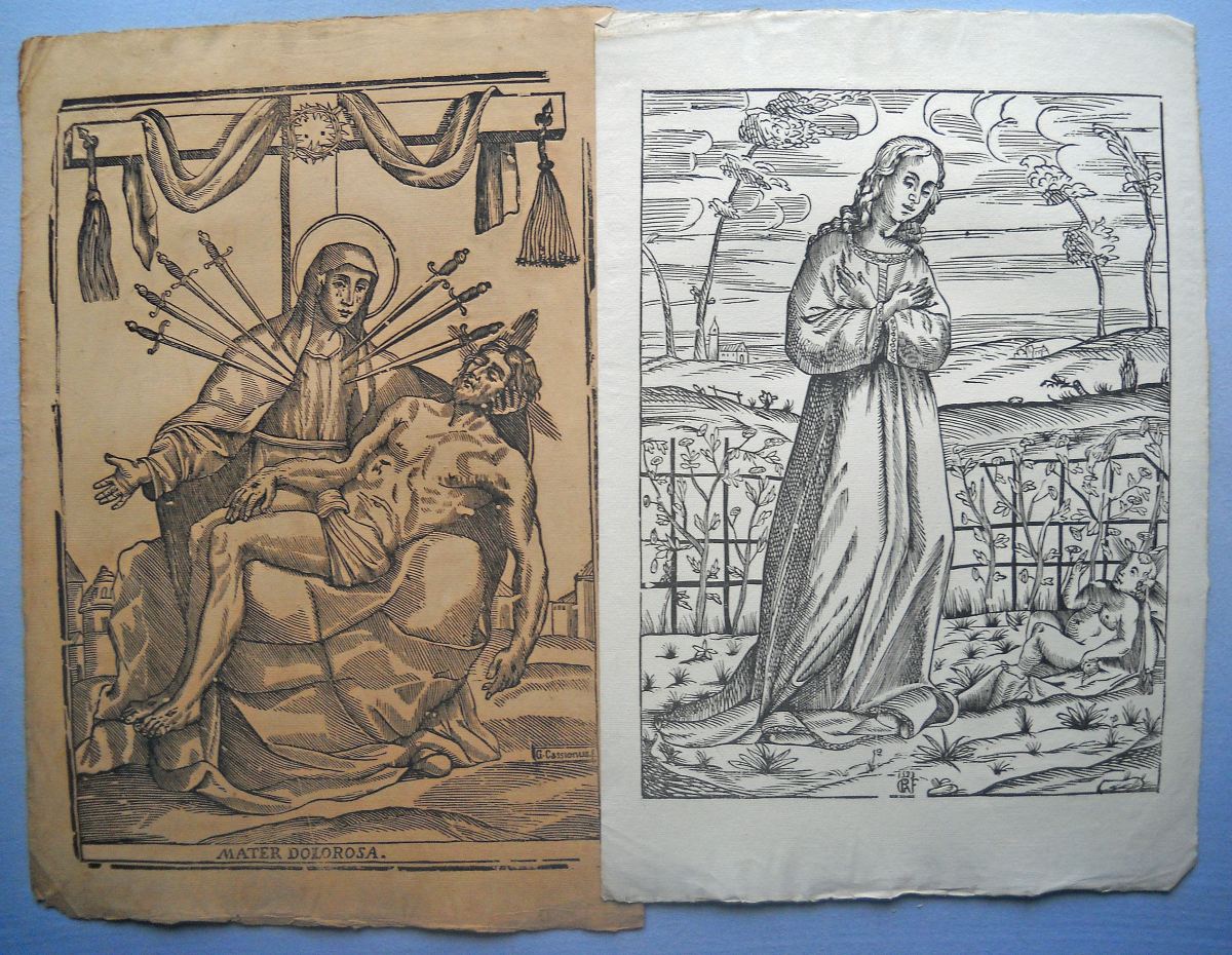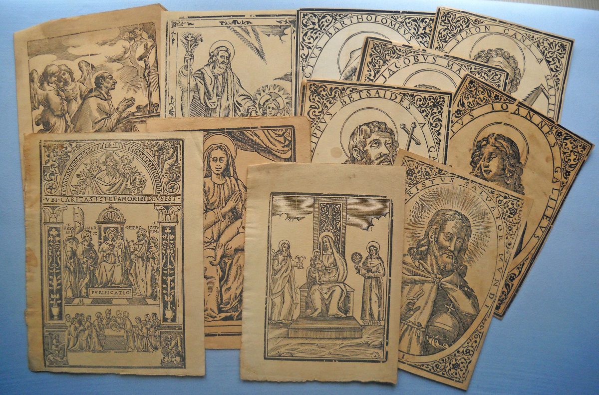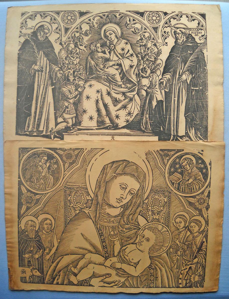 Rare et important lot de + de 105 gravures sur bois, sur papier vergé, petits et grands formats (in-12 à grand in-fol.). Réimpressions de bois anciens des XVIe, XVIIe et XVIIIe siècles, en majorité des uvres d'artistes italiens et allemands, dont 5 épreuves d'Albrecht Dürer (La Grande Passion: Ecce Homo ; L'Apocalypse: les quatre cavaliers de l'Apocalypse ; etc). Quelques doublons.