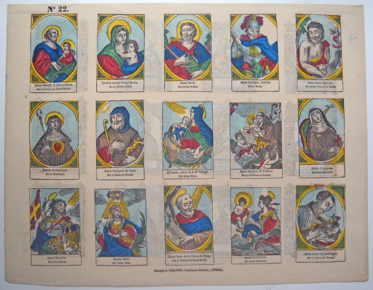 ![Lot 444 - [Imagerie religieuse] ÉPINAL. Fabrique de PELLERIN, saint, saintes et scènes... [Imagerie religieuse] ÉPINAL. Fabrique de PELLERIN, saint, saintes et scènes...](<150:ddoc-611500-d25224ab430bef81d5caf60bef376d59-p100201529502857.jpg, <480:ddoc-611501-654ae91ce953770b75fe9042c51ea01c-p100201529502857.jpg, <640:ddoc-611502-47a0552bb246319db588afd7933d8f59-p100201529502857.jpg, <900:ddoc-611503-c48f515dd458882e25163d2542d3fbfc-p100201529502857.jpg, >900:ddoc-611499-e332abb7d4547dad64d46e9106e188e5-p100201529502857.jpg)