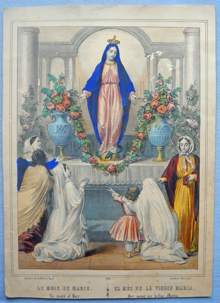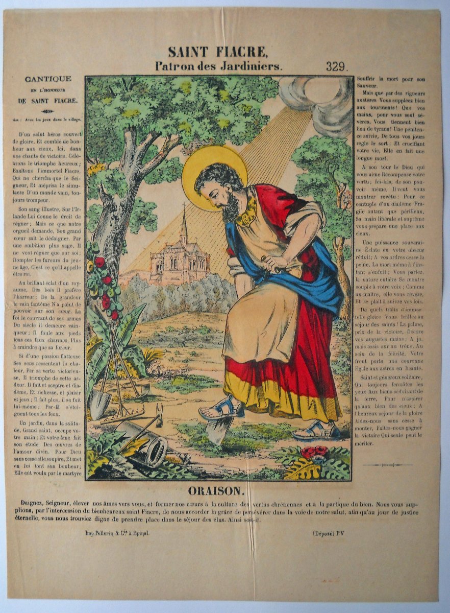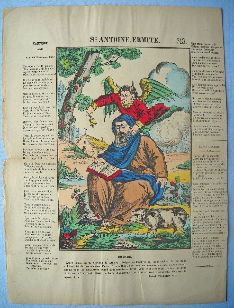 72 épreuves, gravure sur bois ou lithographie rehaussée au coloris de l'époque, dont 8 montées sur papier épais, toutes dimensions, état B à TB: Mariage de Saint Joseph avec la sainte Vierge, sous les auspices du Saint Esprit 158, 42 x 64 cm ; Saint Joseph, époux de Marie, 64 x 41 cm ; Sainte Hélène ; Sainte Cécile ; Saint Fiacre, patron des jardiniers 329 ; Fuite en Égypte 245 ; Saint Georges 334 ; Sainte Françoise 402 ; Album in-4 à l'italienne, reliure moderne en papiernage, titré " Tirages anciens - Imagerie Pellerin à Épinal N°1 ", contenant 46 planches, lithographie coloriée, sur papier mécanique, 40 x 30 cm, état TB: Noël 1862 ; Sommeil de Jésus 1846 ; Jésus, Marie, Joseph 1866 ; Baptême de N.S. Jésus-Christ 1838 ; La Sainte Cène 1906 ; Le tribunal injuste 1824 ; Calvaire de Jérusalem 1845 ; La robe de N.S. Jésus-Christ 1851 ; Le Christ aux stations 1827 ; L'horloge de la passion 1903 ; Les cinq plaies de N.S. Jésus-Christ 1854 ; Christ ayez pitié de nous 1833 ; Ascension de N.S. Jésus-Christ 1860 ; Véritable portrait de N.S. Jésus-Christ 1807 ; Le très saint sacrement 1865 ; Litanies de la sainte Vierge 2167 ; Sacré Cur de Marie 1801 ; Le mois de Marie 1863 ; Notre-Dame auxiliatrice 248 ; Notre-Dame de grâce 1879 ; Notre-Dame d'Espérance 1892 ; De N.-D. de Liesse 1886 ; Notre-Dame du Mont-Carmel 1880 ; Médaille miraculeuse 1905 ; Apparition de la sainte Bible 1894 ; L'Ange gardien 1895 ; Sainte Julie 1233 ; Sainte Philomène 2103 ; Sainte Victoire 2112 ; Sainte Suzanne 2109 ; Ste Philomène 2071 ; Sainte Rose de Lima 2105 ; Ste Joséphine 408 ; Sainte Louise 2082 ; Saint Donat martyr 2025 ; Bienheureux Gérard Majella 2065 ; Saint Eustache martyr 2066 ; Saint Alexis 2010 ; Christ aux Saintes femmes ; médaille miraculeuse 2115 ; Le roi des rois ; la reine des cieux 2120 ; Le Bon pasteur ; Laissez venir à moi les petits enfants 2121 ; Christ aux anges ; Christ aux saintes 2122 ; 4 planches à compartiments ; etc.