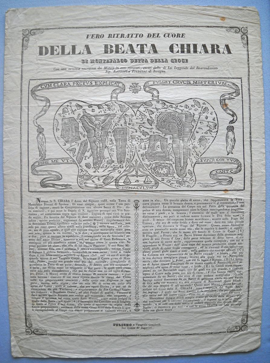 Joint: placard en italien titré: Vero Ritratto del cuore della betata chiara di montefalgo detta della groge, 42 x 30 cm.