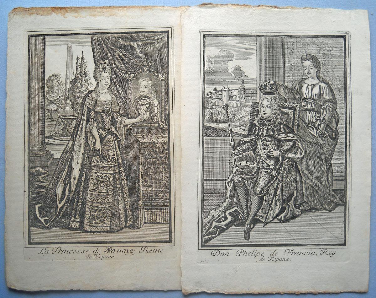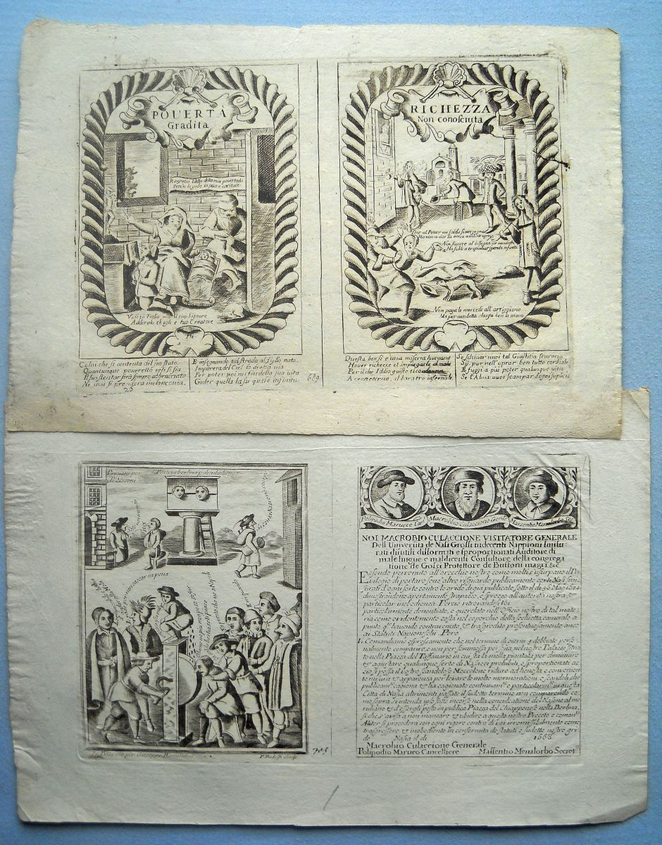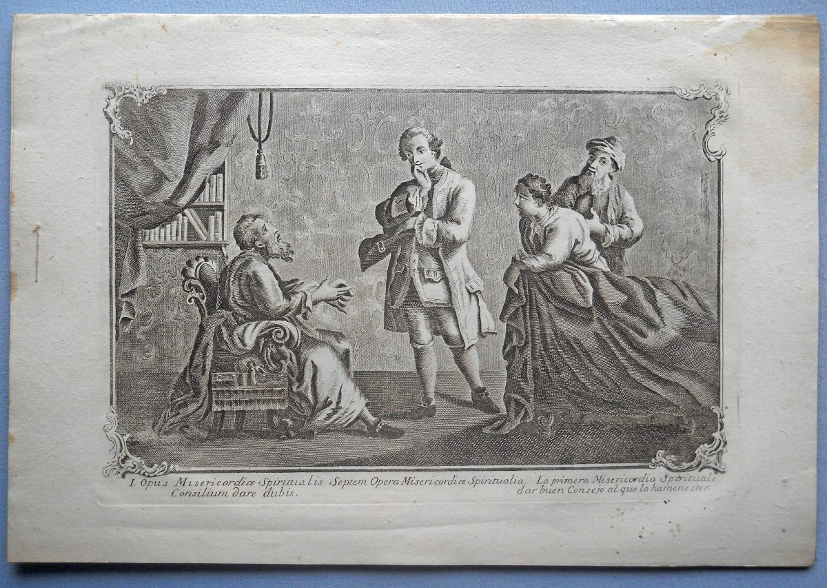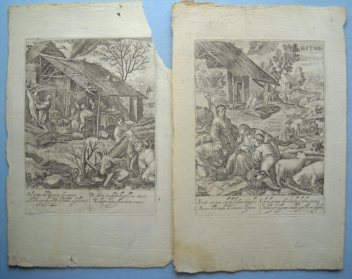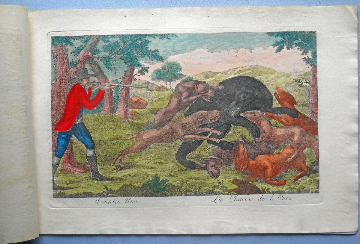 Lot de 53 estampes dont 46 p. gravées en taille-douce sur papier vergé dont 18 à rehauts de coloris d'époque reliées par un point de fil, 39 x 25 cm max., dont: Dama Francese che si Acconcia in Abito di Casa ; Estat et Inverno ; Carlo VI imperatore de Romani ; Cristina Elisabetta imperatrice de Romani ; Don Phelipe de Francia Rey de Espana ; La princesse de Parme Reine de Espana ; les quatorze uvres de miséricorde spirituelles composées de 2 séries de chacune 7 estampes reliées par un point de fil, l'une en noire et l'autre coloriées ; 4 p. de scènes de chasse ; Der Mann als Haubenstock ; etc - 2 épreuves gravées sur bois coloriées, 44 x 33 cm: Il cane Barbino ; Il gatto Domestico - 5 lithographies. La plupart des estampes éditées par la maison Remondini.
