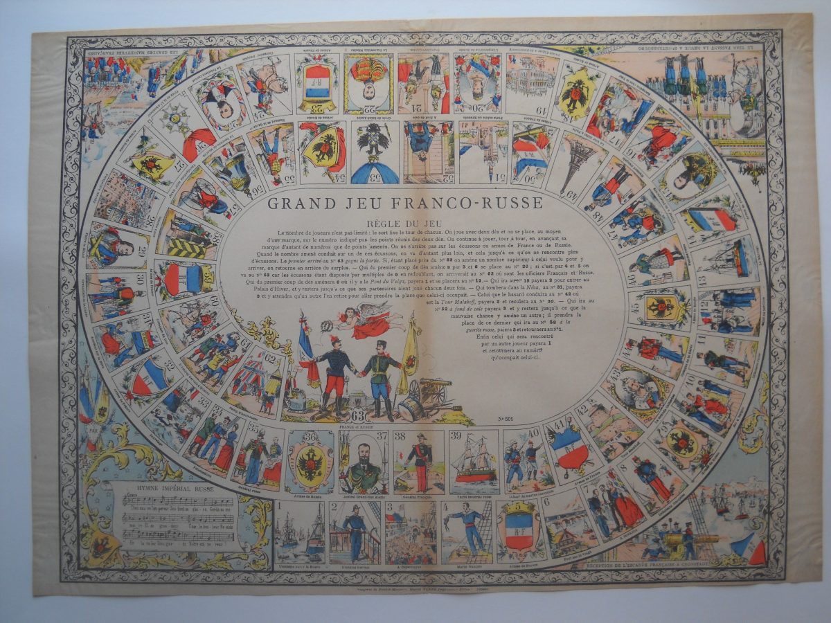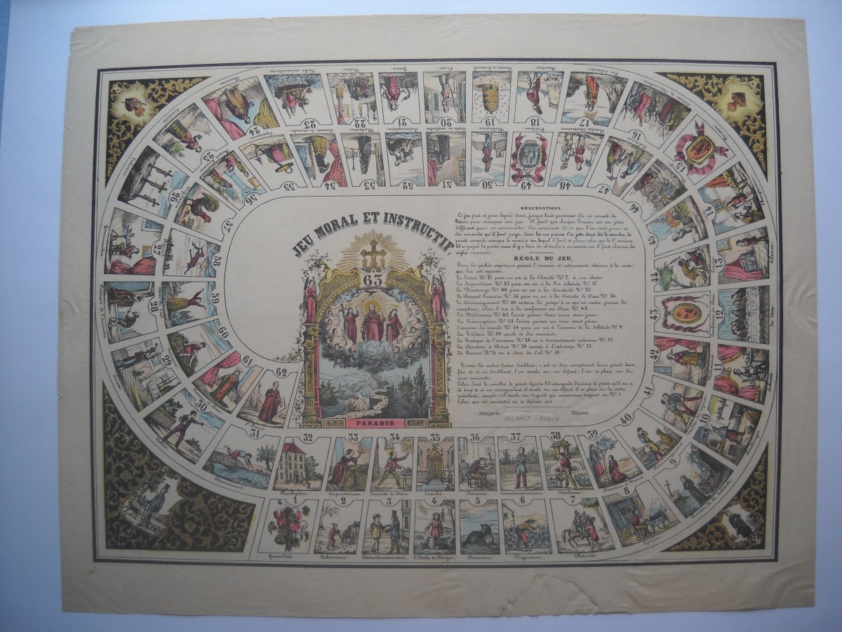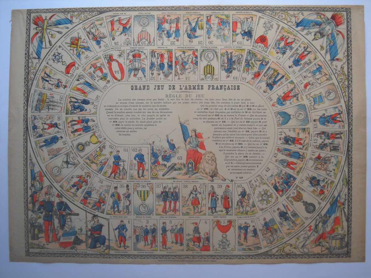 [Delhalt]: " Jeu moral et instructif ", 44 x 55,5 cm, manques et restaurations ; " Jeu de l'oie ", 41 x 55 cm - [E. Ferry] " Grand jeu du pont terrible ", 50 x 65 cm ; " Grand jeu du voyage à l'exposition de 1889 à Paris ", 50 x 65 cm - [M. Vagné]: " Grand jeu de l'armée française ", 41 x 57 cm ; " Grand jeu Franco-Russe ", 41 x 56,5 cm.