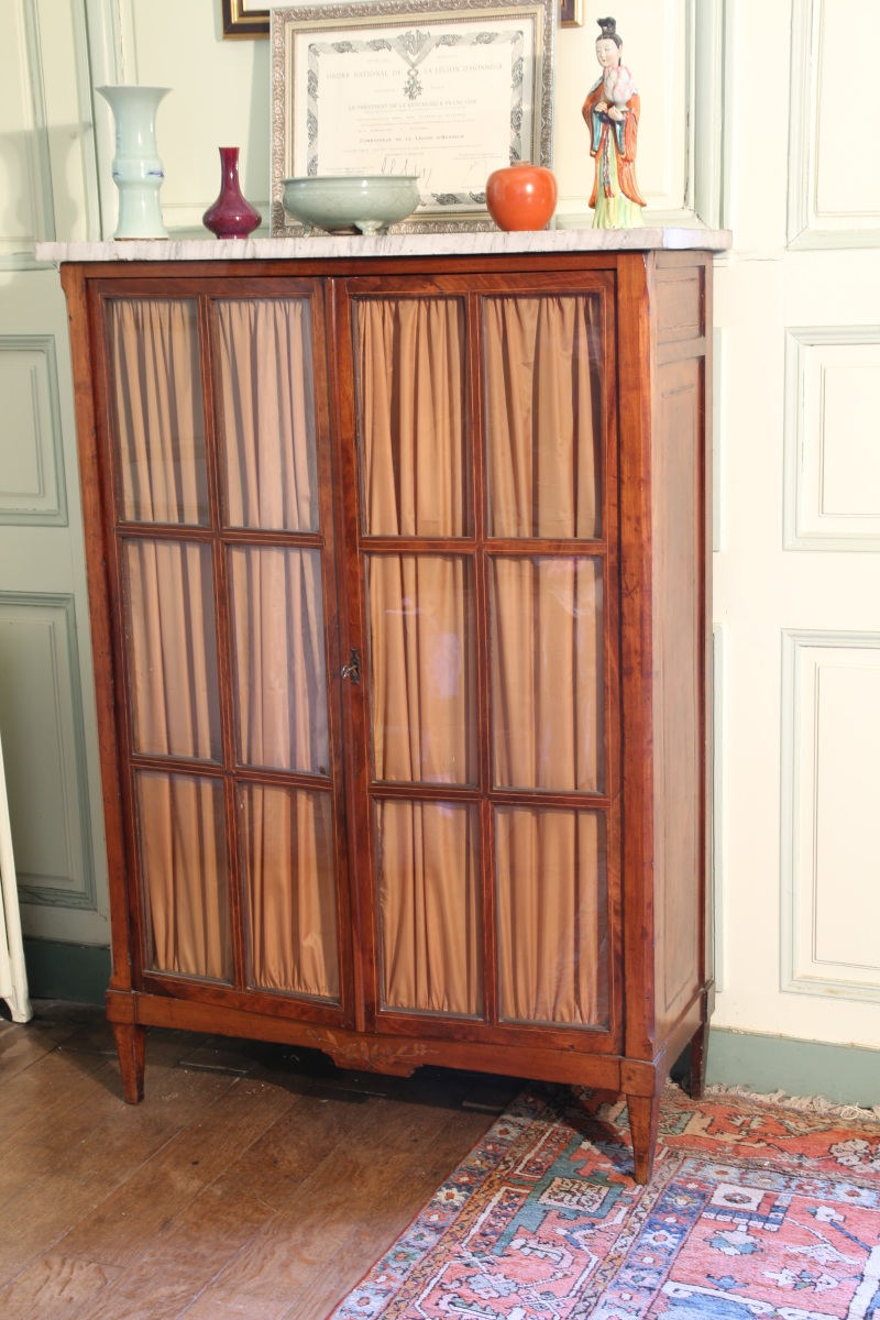 MEUBLE-VITRINE de forme rectangulaire en bois de placage. Il ouvre par deux vantaux.