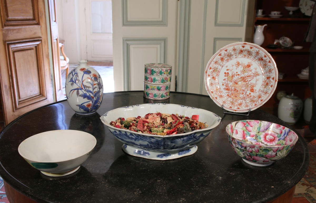 - ASSIETTE à décor floral orangé d'un faisan et de feuillages. Epoque Kangxi. Diam. 22,5 cm. (restauration).