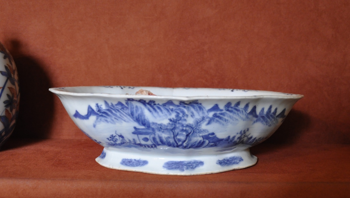 EXTREME-ORIENT, JATTE en porcelaine à décor en bleu et blanc de paysages de montagne.
