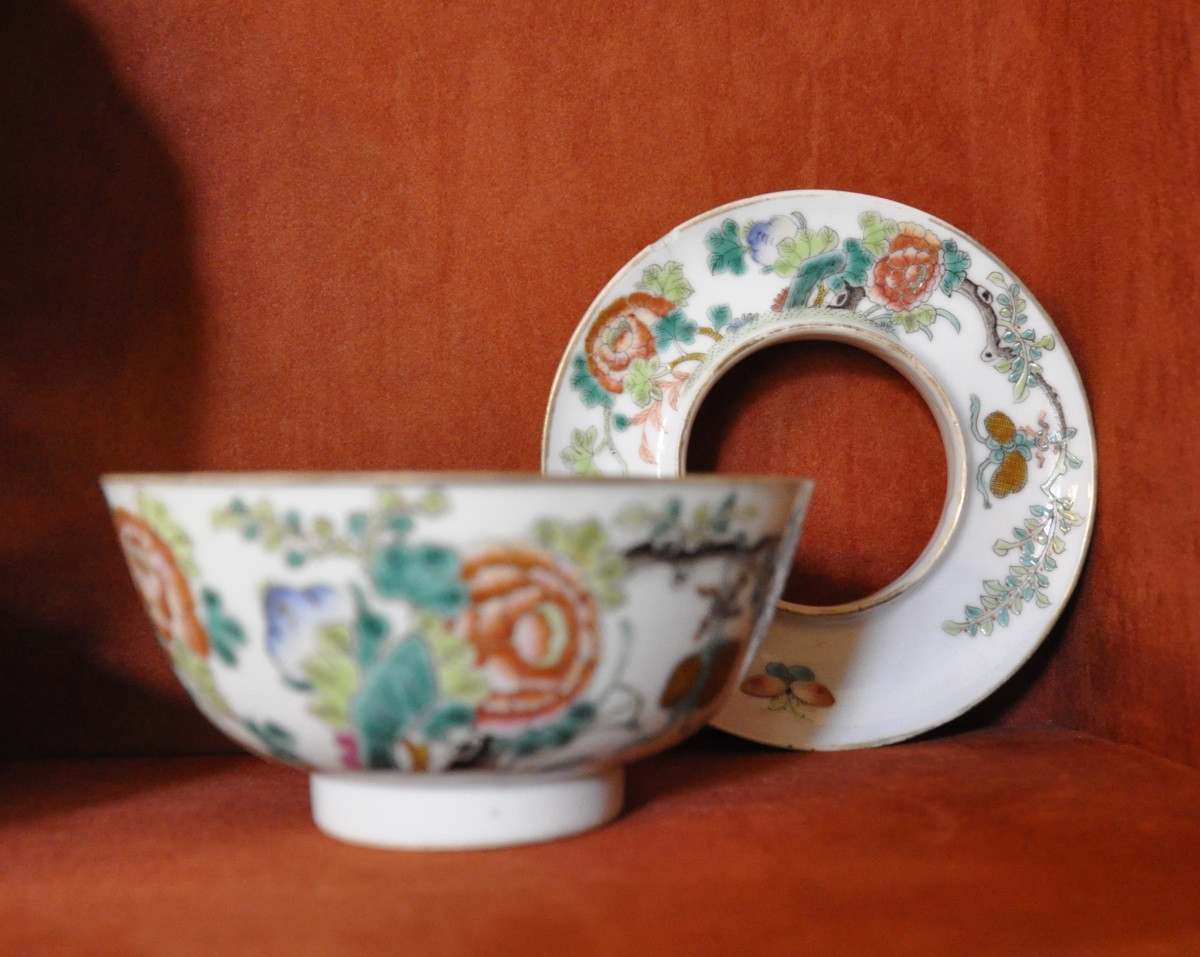 - TASSE et sa SOUS-TASSE à décor floral sinisant.
