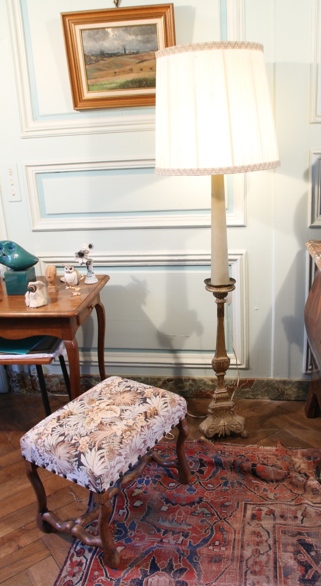 PIQUE CIERGE en bois sculpté et doré.