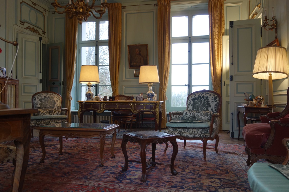Grand TAPIS D'ORIENT en laine à fond rouge à décor de fleurs. Bordure rouge encadrée par deux contre-bordures blanches.