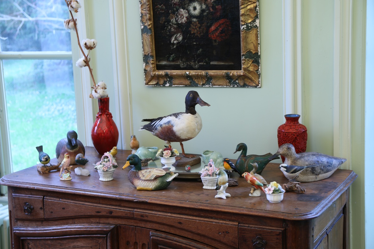 - RÉUNION DE BIBELOTS, environ 25 pièces dont miniatures d'oiseaux, canards, paniers de fleurs en porcelaine...