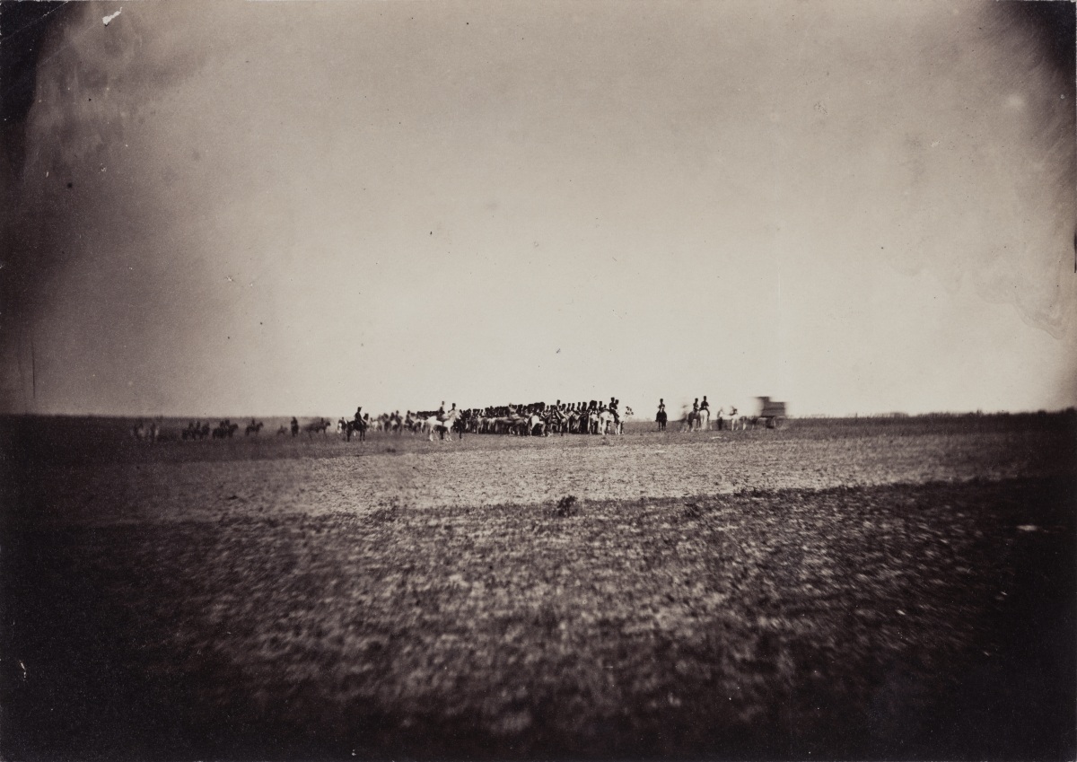 Gustave LE GRAY. Maneuvers of the Imperial Guard cavalry at Châlons camp. Albumen print, 1857.