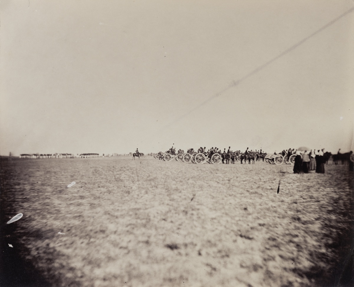 Gustave LE GRAY. Maneuvers of the Imperial Guard's artillery and cavalry at Châlons camp. Albumen print, 1857.