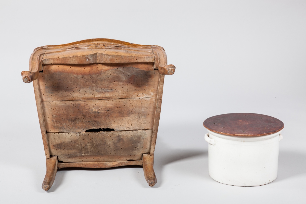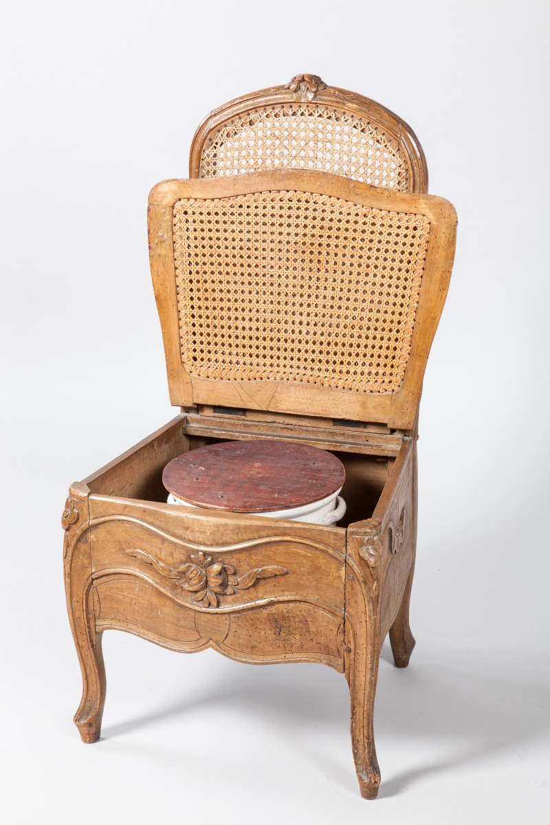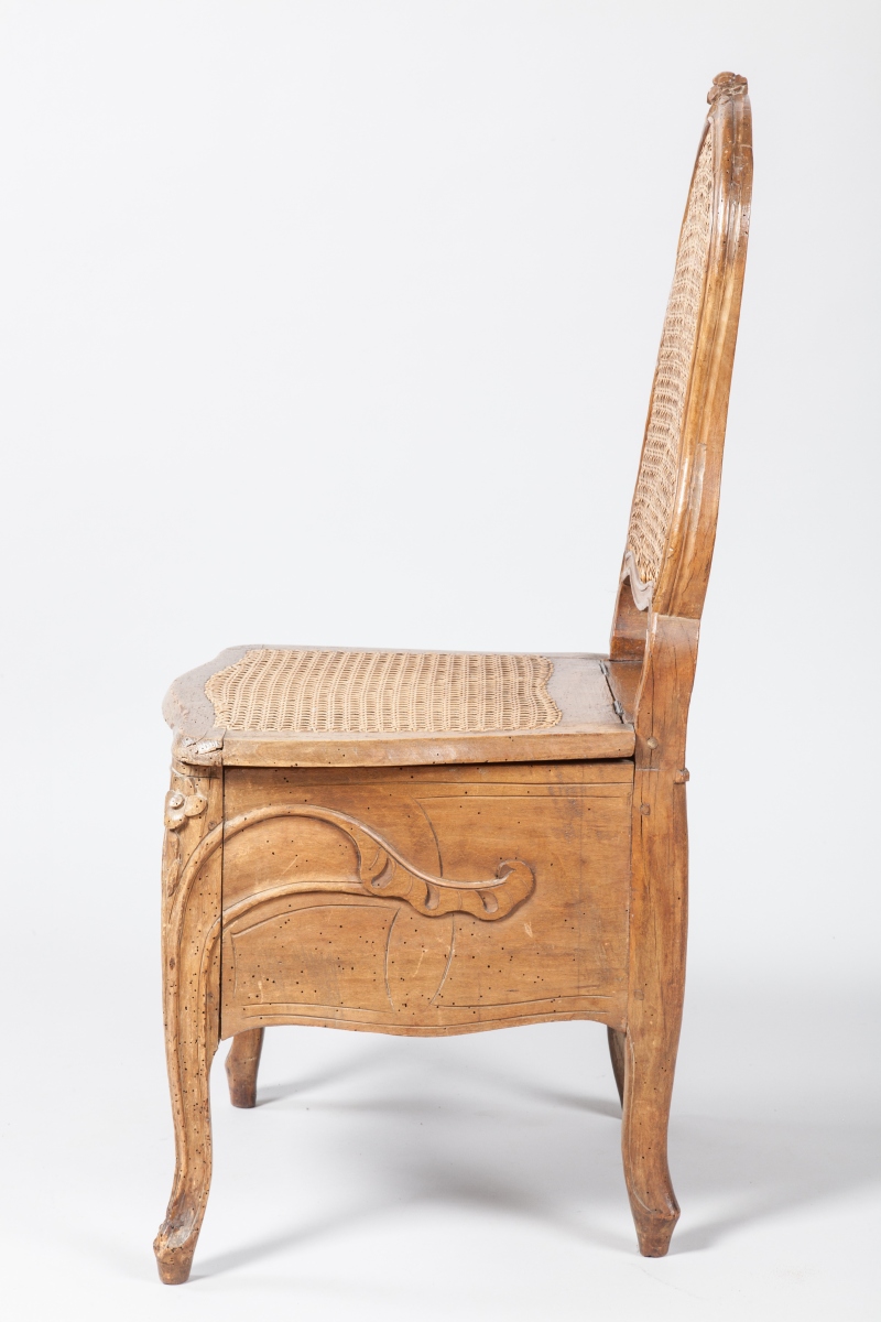A Louis 15 caned and carved wood COMMODE CHAIR from the Maréchal de Rochambeau Collection. Louis 15 period.