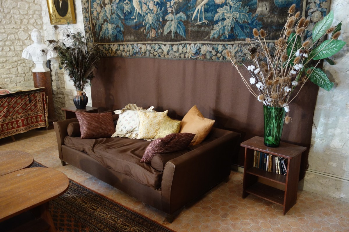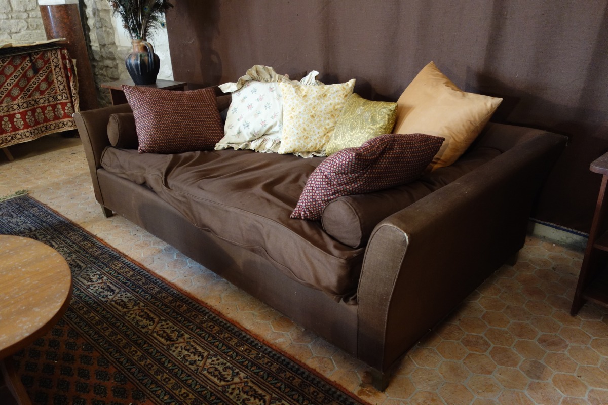 - CANAPÉ de forme rectangulaire garni de tissu.