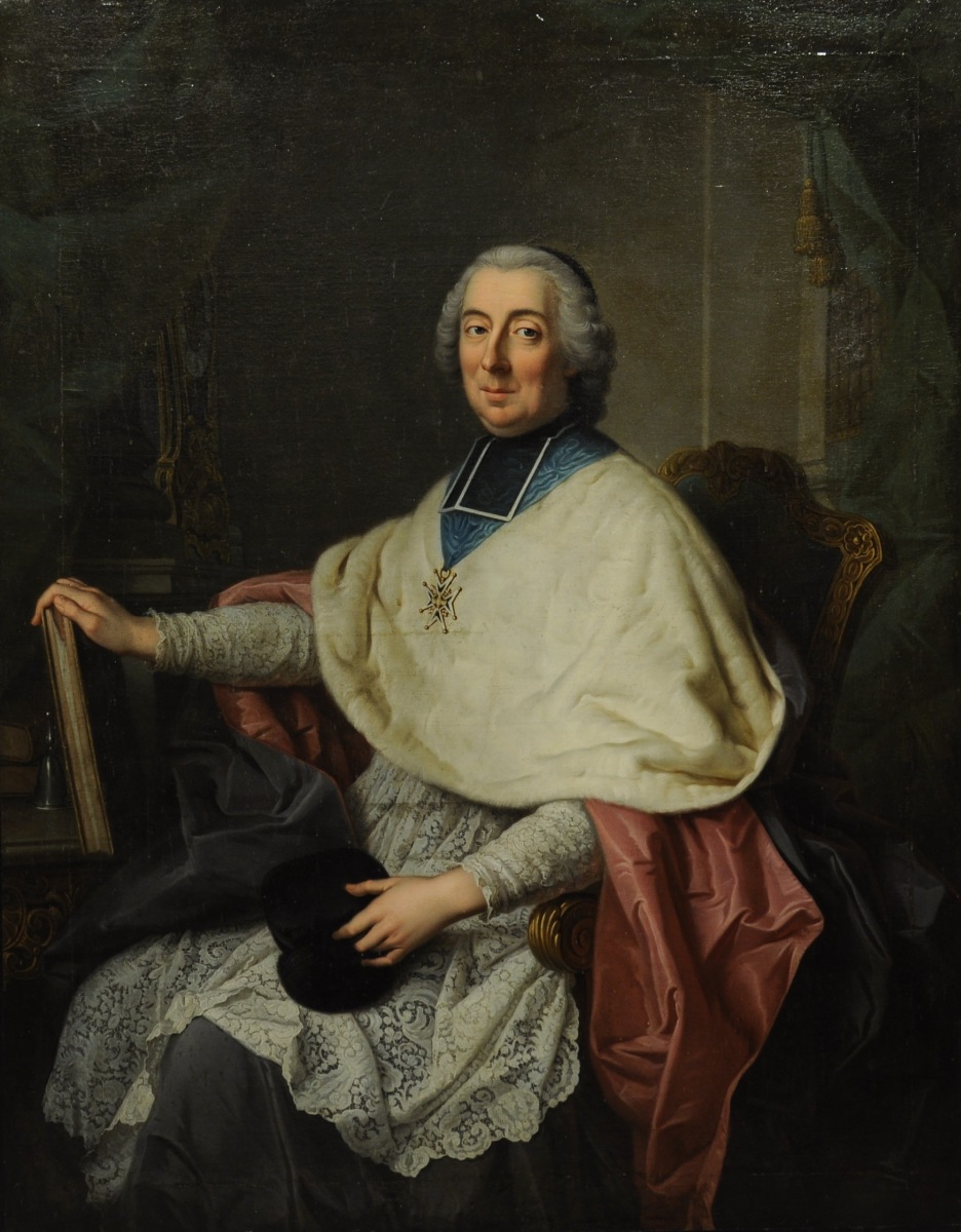Ce tableau était anciennement attribué à Roslin représentant le chanoine de La Roche Aymon, qui sacra Louis XVI.