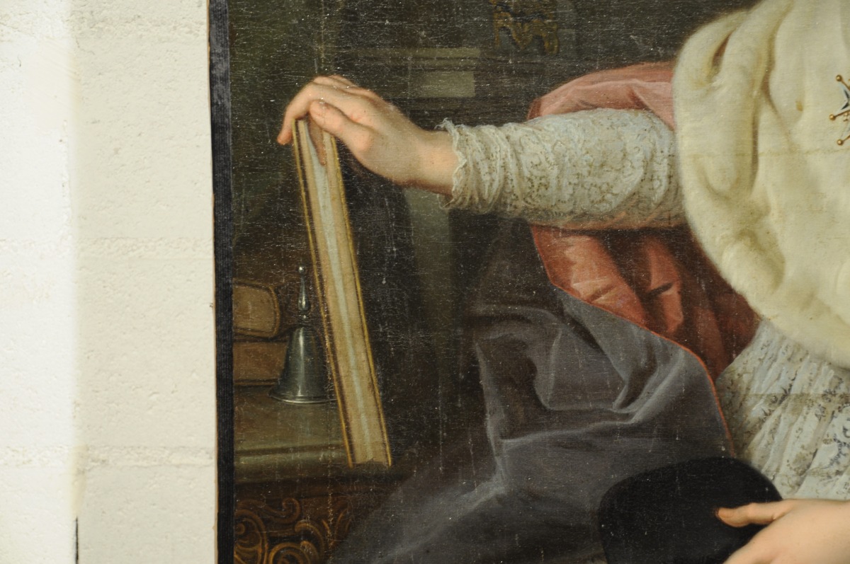 Nous pouvons rapprocher notre tableau du portrait d'Armand Jules de Rohan-Guéméné (1695-1762), archevêque de Reims, peint par Hyacinthe Rigaud en 1733, et seulement connu par la gravure qu'en donna Gilles Edme Petit (ca. 1694-1760) en 1739.