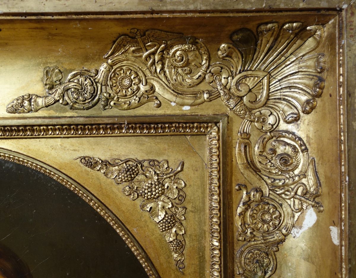 Cadre à riche ornementation en applique de caducée, pampres et tête de bélier (accident).