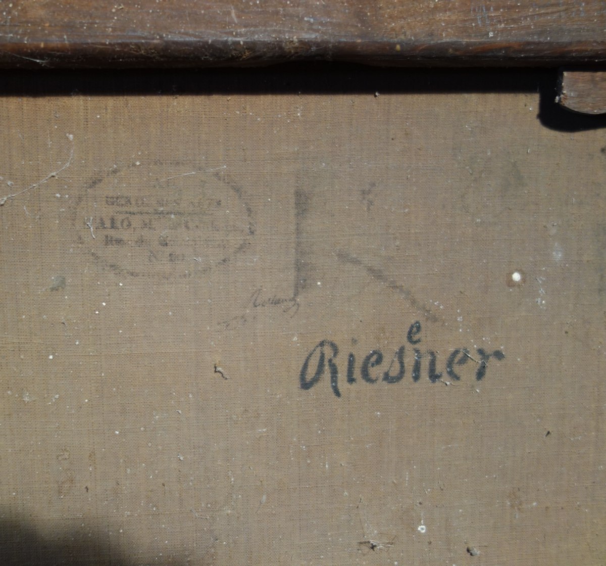 Toile marqué "Ri(e)sener" au dos et signée "Rolland".