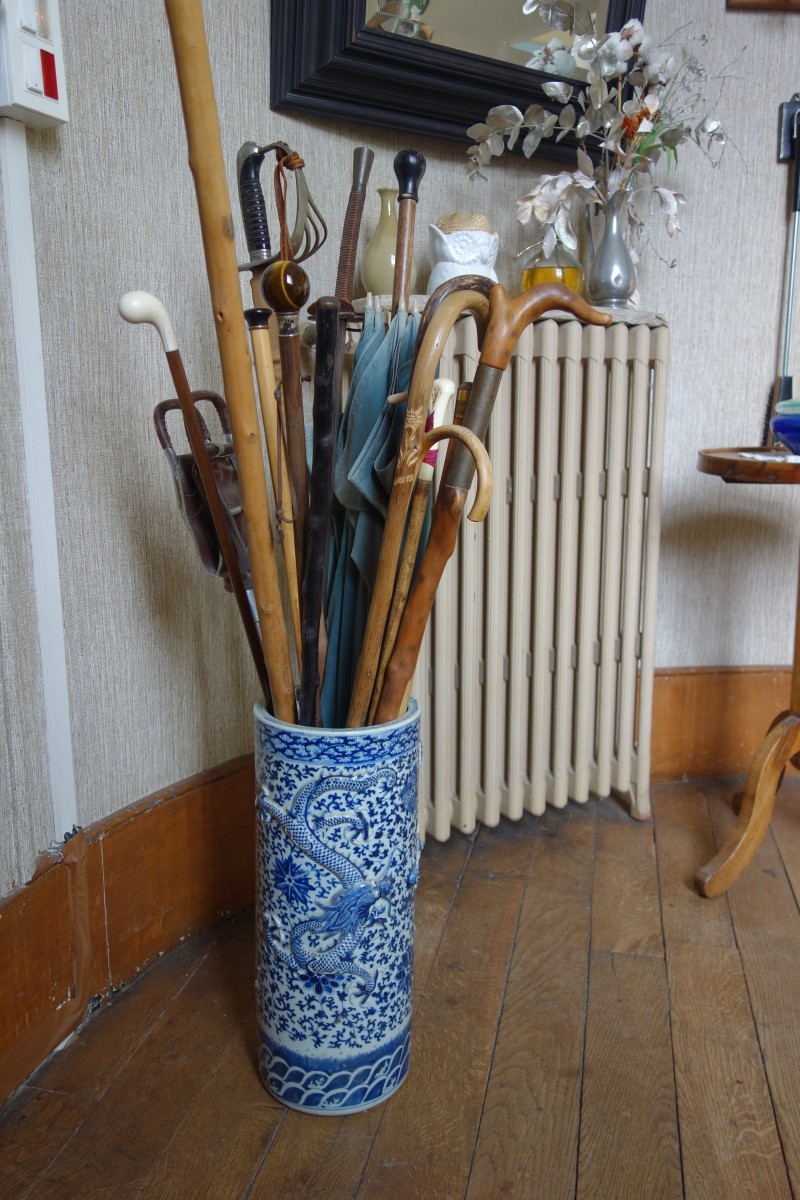 JOINT: PORTE-PARAPLUIE en porcelaine dans le goût de la Chine (Haut. 46 cm).
