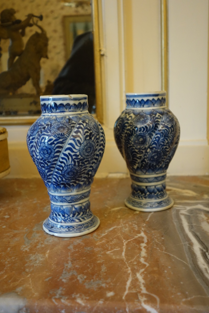 - Paire de VASEs en céramiques bleue et blanche à cotes torses godronnées.
