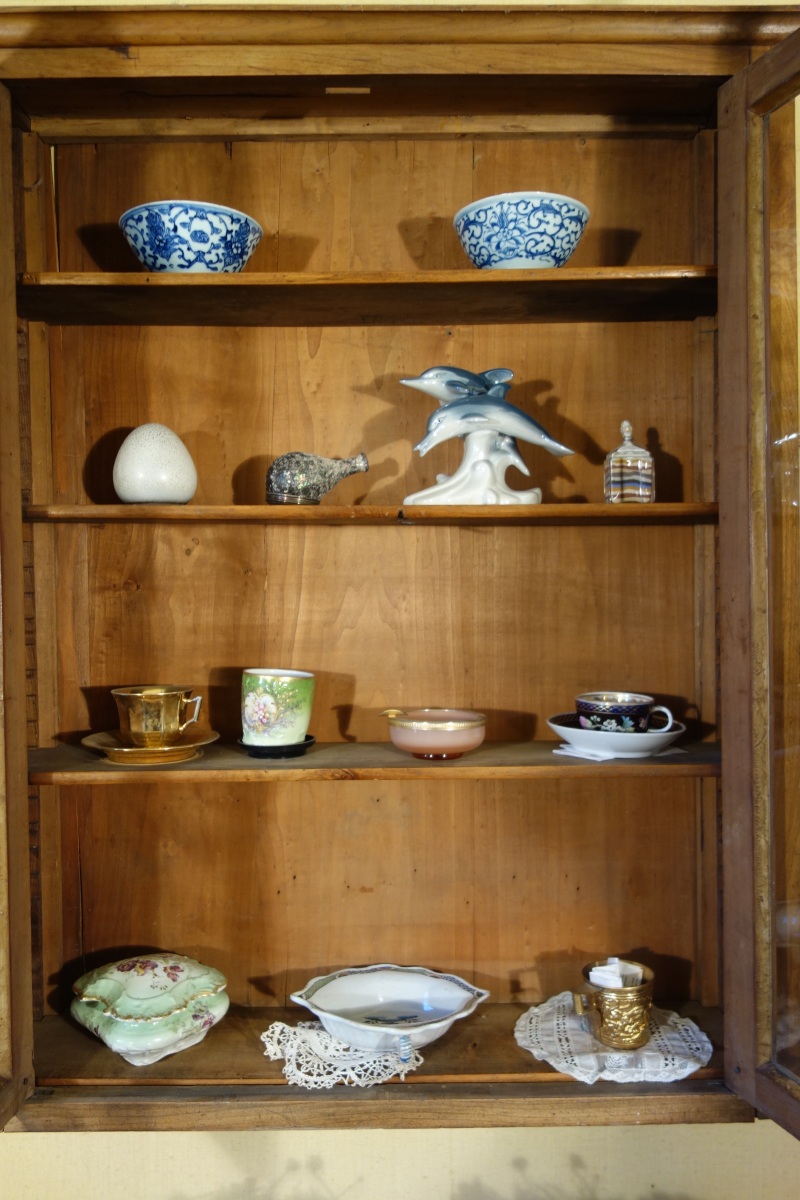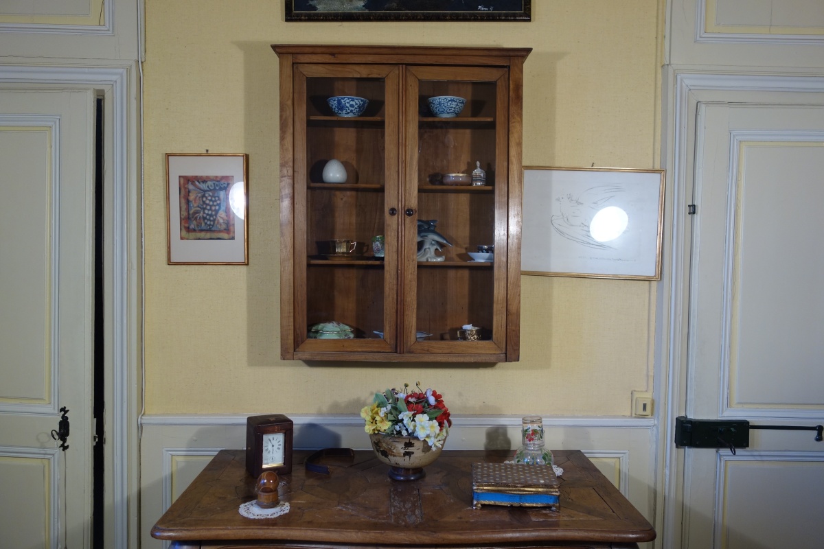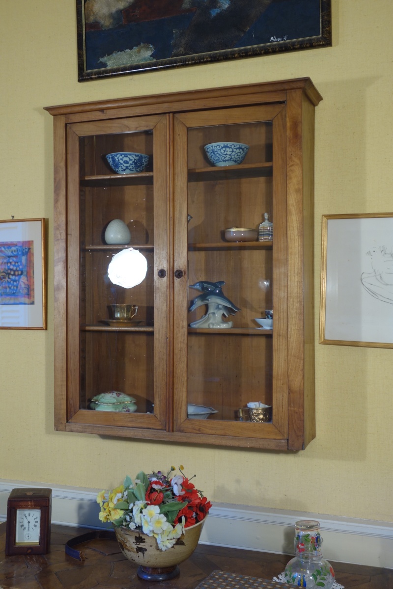 VITRINE en bois naturel de forme rectangulaire ouvrant par deux portes vitrées. XIXe.