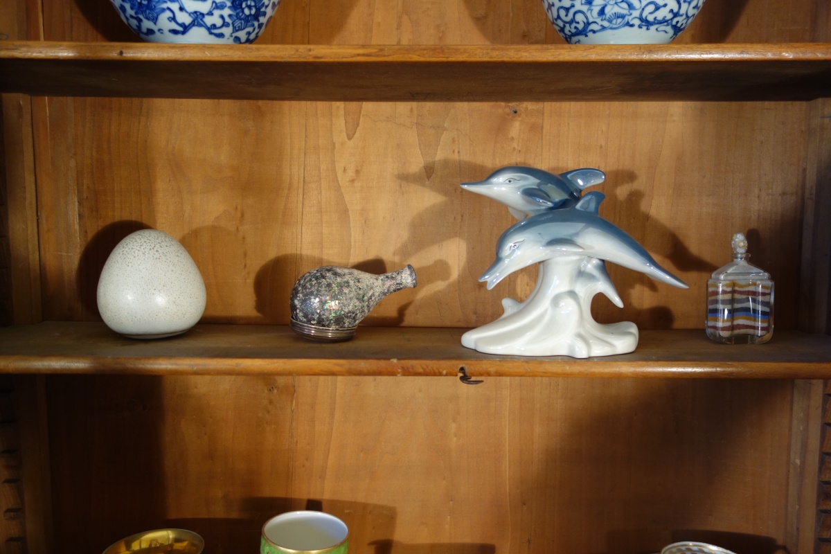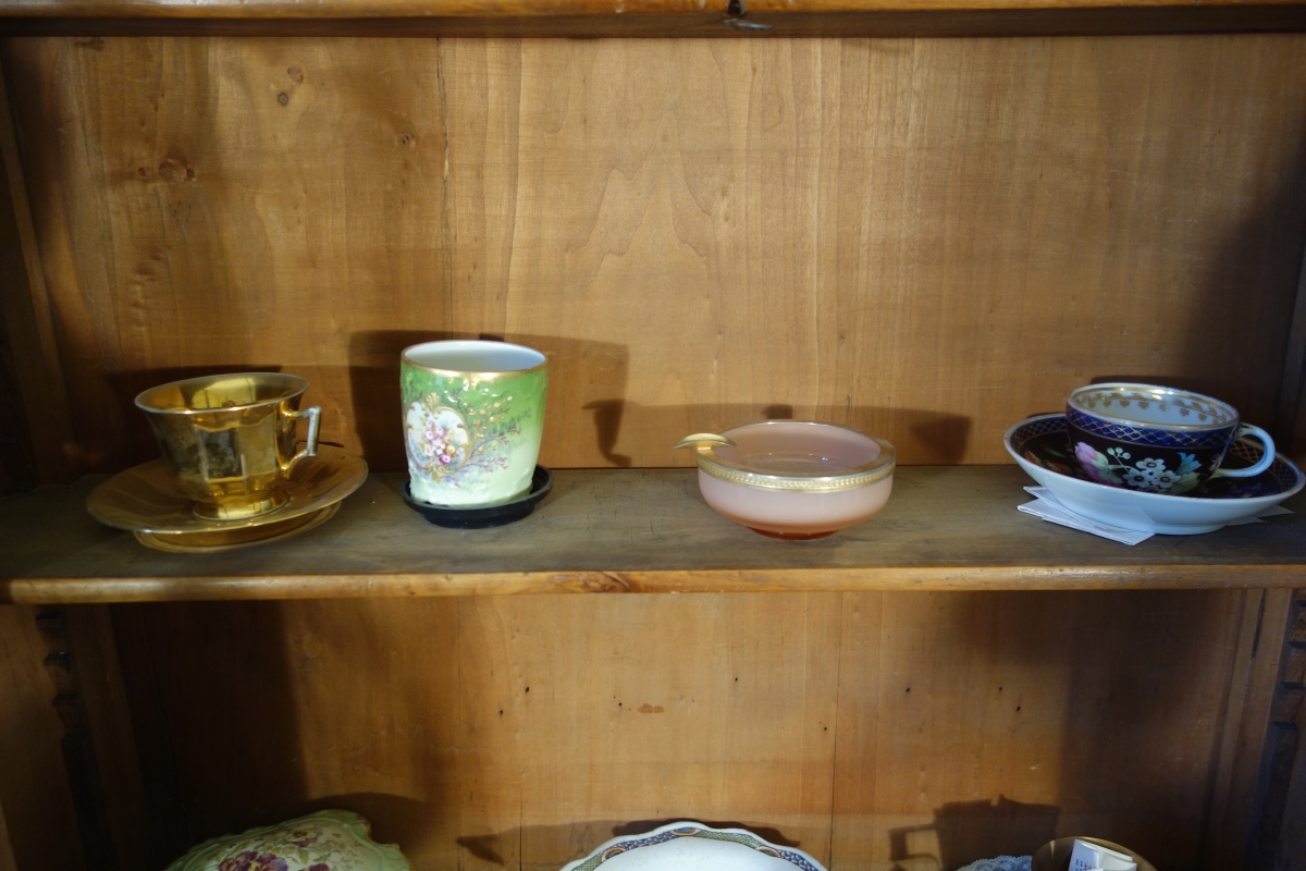 - CENDRIER en opaline rose et métal doré, diverses CÉRAMIQUES, VERRERIES, BOÎTES en bois doré...
