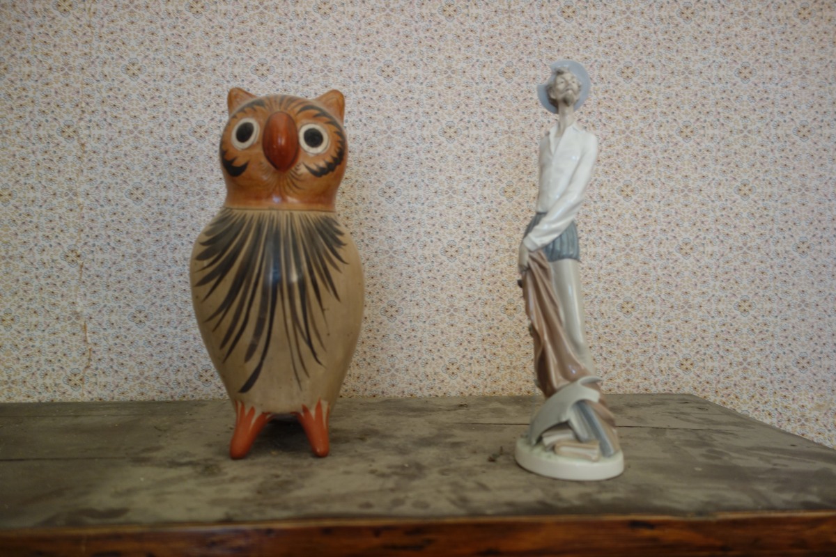 - SAUCIÈRE et son PLATEAU en faïence à décor de fleurs roses. Prise en agrafe. Long. 23 cm