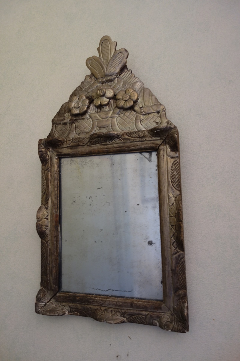 - Petite GLACE ancienne, bois argenté, miroir au mercure