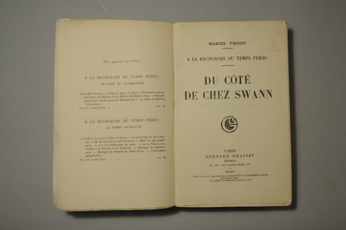 L'ouvrage, refusé par trois éditeurs, fut publié à compte d'auteur chez Grasset. Le tirage fut de 1350 exemplaires, dont 650 furent rachetés par Gallimard, et remis en vente en 1917 avec une étiquette au nom de la NRF collée sur le nom de Grasset.